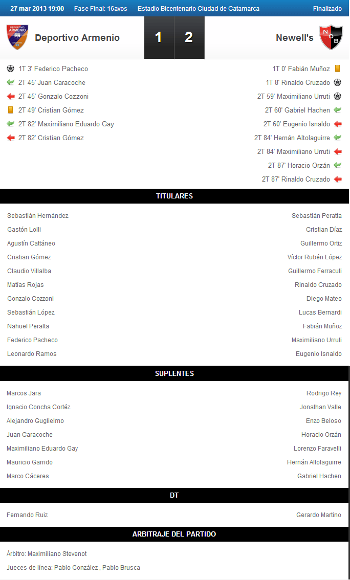 PRIMER TRIUNFO EN LA NUEVA EDICION DE LA COPA ARGENTINA: En su 2º presentación en esta nueva edición organizada por la Asociación Argentina de Fubtol, el equipo muleto del Tata Martino logra un histórico triunfo, luego de la malograda participación en 2011 de la mano de Diego Cagna.