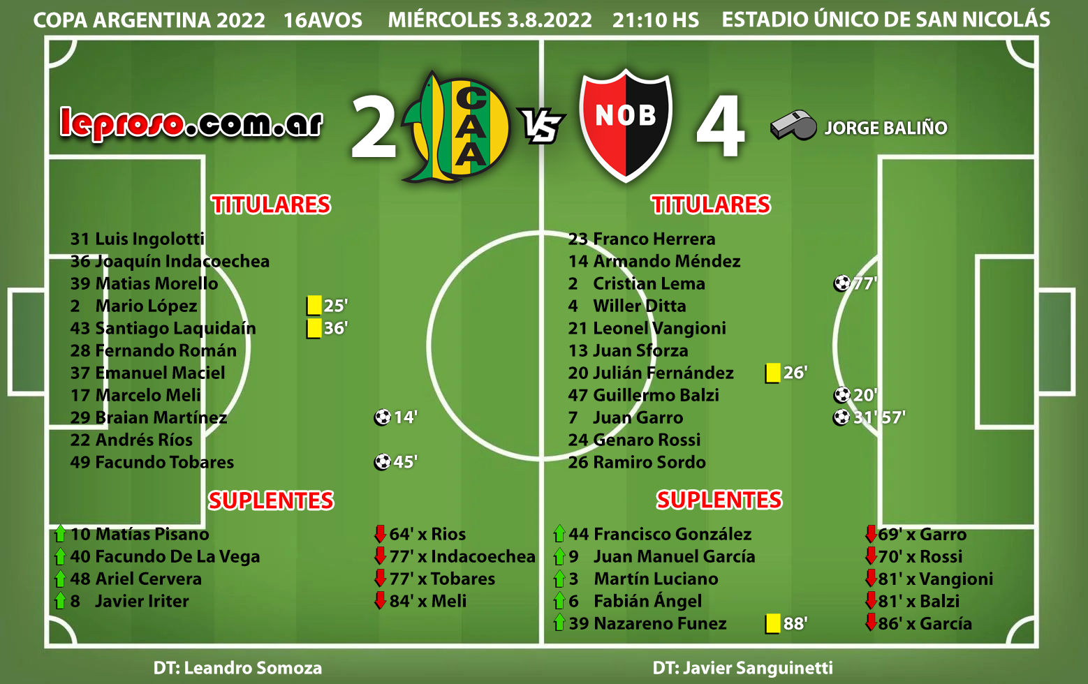 JAVIER SANGUINETTI 2º partido por Copa Argentina dirigiendo a la lepra. Y sumando los 13 encuentros por la Copa de la Liga 2022 Binance, Archu suma 15 partidos de Copas Nacionales, con 9 triunfos, 2 empates y 4 derrotas. Con estos 4 goles ante Aldosivi, su equipo es el más goleador por Copa Argentina con 7 goles, superando los 5 tantos de Osella (2016) y De Felippe (2017). |