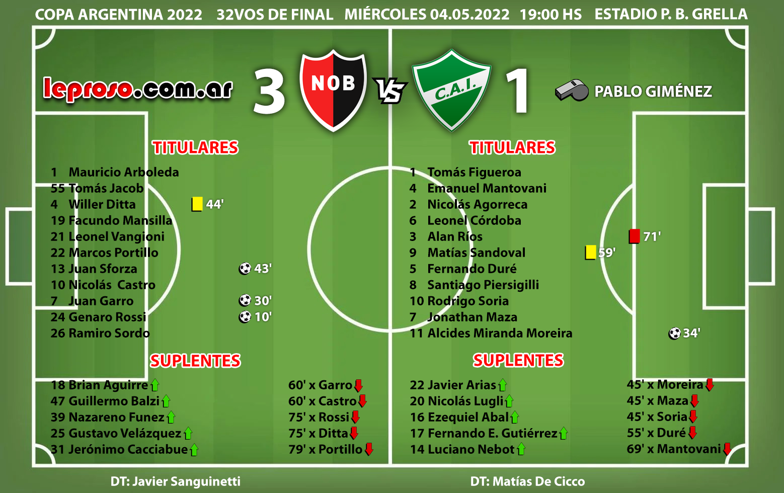 JUAN SFORZA sentencia el pleito en 3-1 y convierte de esta manera su 1º gol en Copa Argentina, el 3º con la rojinegra, todos por Copas Nacionales. |