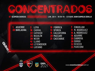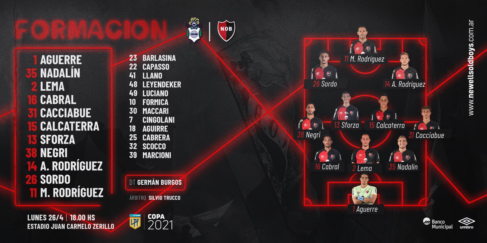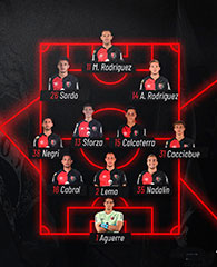 BRIAN AGUIRRE delantero oriundo de la ciudad de Granadero Baigorria, surgido del Club Defensores de Villa Cassini de la ciudad de Capitán Bermúdez con pasado en las inferiores rojinegras, hace su debut oficial y se transforma en el 3º jugador que debuta en la era Burgos (Calcaterra y Jaime los anteriores). Ingresó por Ramiro Sordo a los 76' con la dorsal Nº 18 en su espalda. Los antecesores de esa dorsal fueron VOBORIL (2016), JOAQUIN TORRES (2015), ORZAN (2012), NOIR (2011), LUIS MIGUEL RODRIGUEZ (2010), SANCHEZ PRETTE (2009), MATIAS DONNET (2007) entre otros.