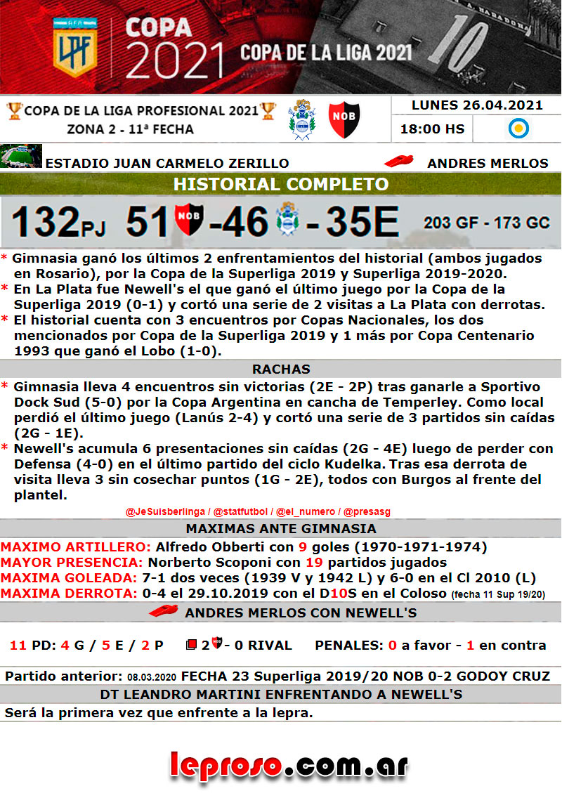 ....... Con Gimnasia LP perdimos 1-2 en 4 oportunidades, la primera fue en 1948 en el Parque Independencia, las ........otras 3 en La Plata, 2002, 2006 y 2021.