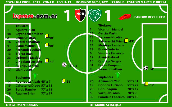 DT GERMAN BURGOS : en su 11º presentación sumó un nuevo empate, en total 5 pardas, 3 victorias y 3 derrotas. En esta Copa de la Liga Profesional 2021 le tocó dirigir 8 partidos, cosechando 2 triunfos, 4 empates y 2 derrotas, su equipo convirtió 11 goles y recibió en contra la misma cantidad. Su equipo terminó último en la tabla general de posiciones y esto no se daba desde el Apertura 1992 con Picerni (fecha 1 a 10) y Puppo (fecha 11 a 19) hace 29 años atrás. En esta ocación también participaron 2 técnicos aunque con menos cantidad de partidos por las características del Torneo dividio en 2 zonas iniciales, primero Kudelka (fecha 1 a 5 con 4 derrotas y 1 empate) y finalmente Burgos (fecha 6 a 13 con 2 derrotas, 2 triunfos y 4 empates), Kudelka sacó el 6,66 % de los puntos, en tanto el mono Burgos obtuvo el 41,66 % . A favor de Burgos está invicto de Local por Copa Nacional, solamente perdió en el Coloso frente a Libertad de Paraguay por Copa Sudamericana.
