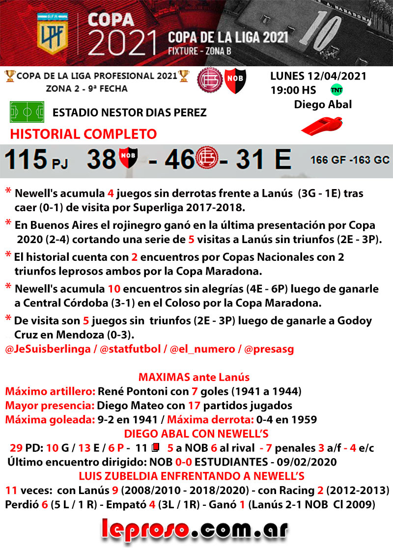 9 JOSE SAND volvió a convertirle a Newell's por 6º vez. Los primeros 3 goles por Torneos regulares de AFA en el CL 2009, en 2016 y en la Superliga 2019/20 y los otros 3 en Copas Nacionales, doblete en la derrota granate ante la lepra 2-4 en la Copa Maradona y el último por la fecha 9 de la Copa 2021. Todos siendo jugador de Lanús.