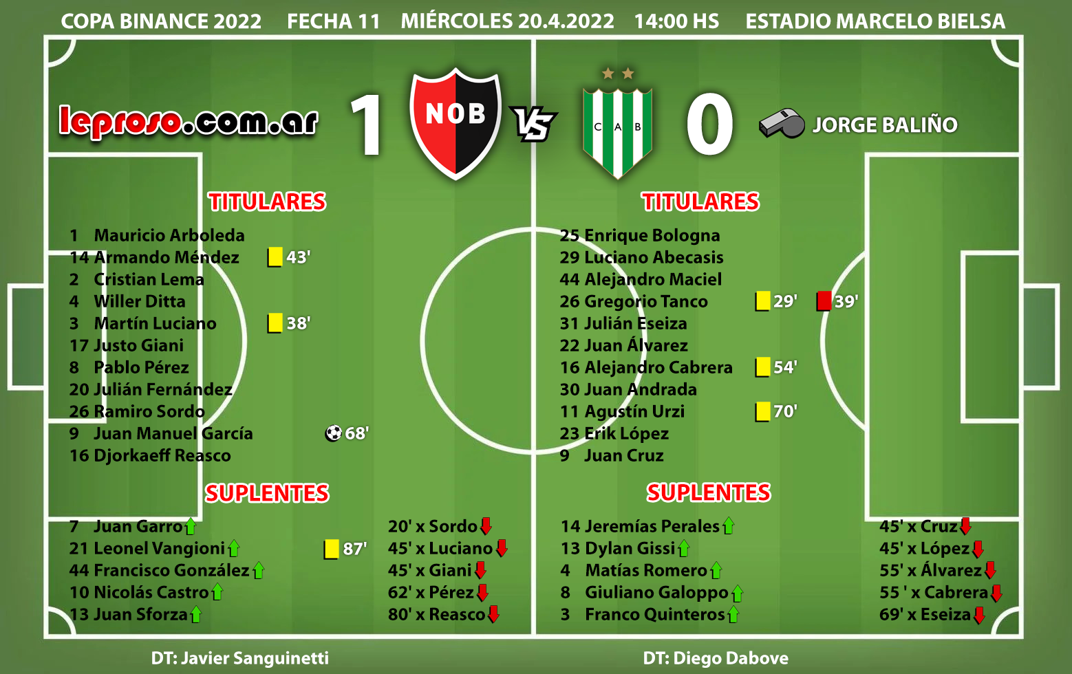 DIEGO DABOVE : enfrentó a la lepra 4 veces siendo DT rival y es la primera vez que es derrotado por un equipo rojinegro. Los anteriores fueron victoria con Godoy Cruz en 2018 (2-1), victoria con Argentinos Js en 2019 (1-0) y empate con Banfield en 2021 (0-0). |