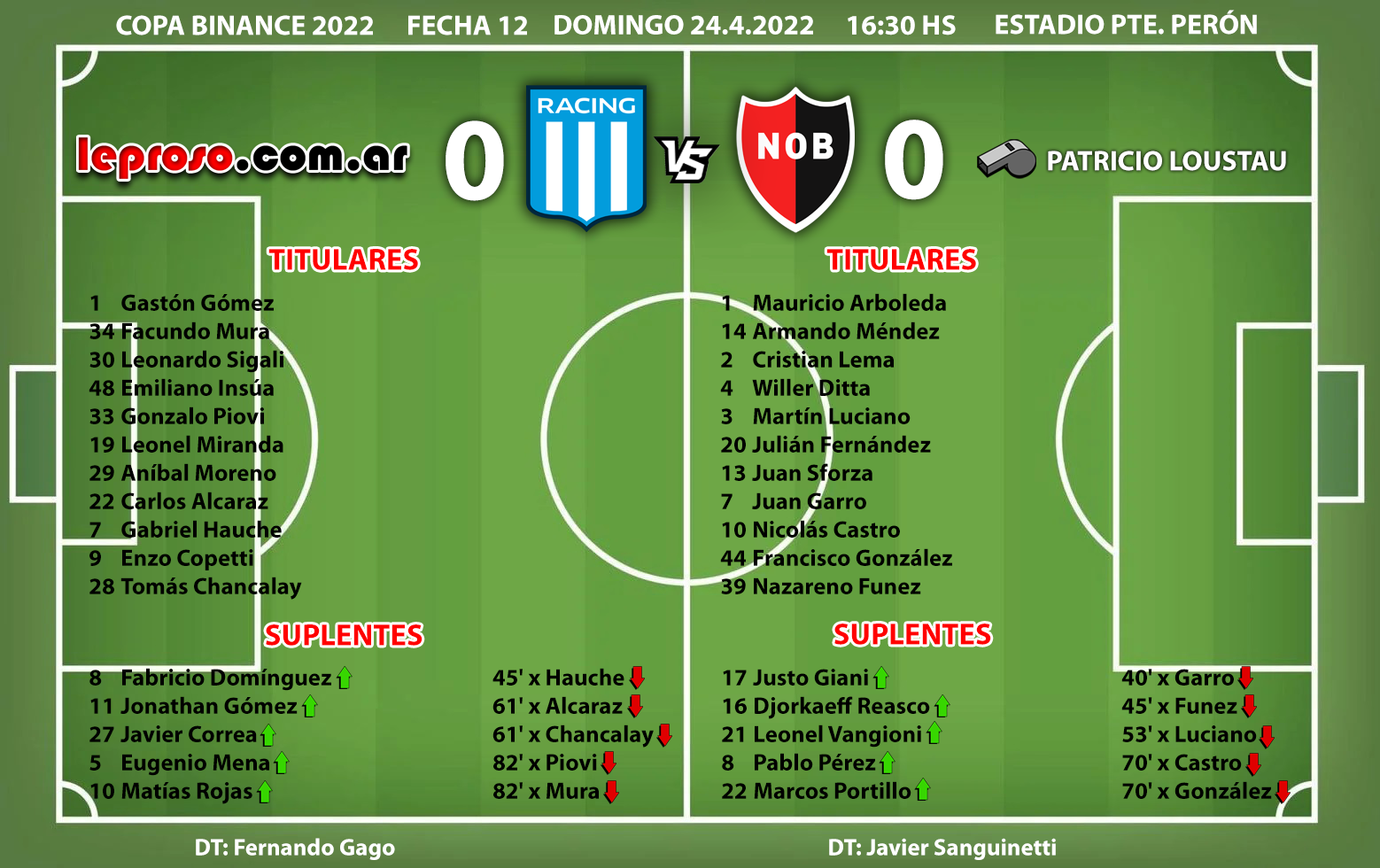 JAVIER SANGUINETTI : suma 7 victorias , 2 empates y 3 derrotas, 23 puntos sobre 36 (63,88 % de efectividad), una performance que supera los 21 puntos de Kudelka en sus primeras 12 presentaciones como DT rojinegro, los 22 puntos de Martino en sus primeros 11 cotejos al mando de la lepra, pero 3 puntos menos que Alfredo Berti en su arranque en el Torneo Inicial 2013 quien sumó 26 puntos en 12 partidos y es record en Torneos Cortos desde 1990. No obstante Berti luego de esa racha, perdió ante Central y estuvo 12 partidos sin conocer la victoria. |