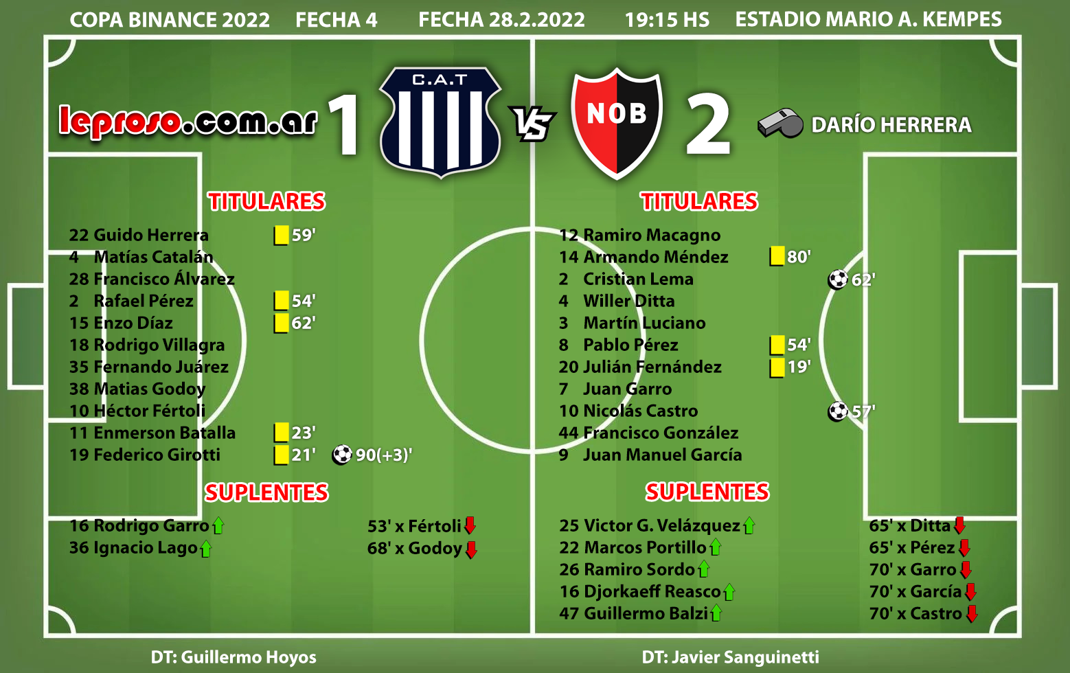 Newells hace 4 partidos que no pierde con la T y registra 2 victorias consecutivas en los últimos enfrentamientos (3-2 en el Debut del 2º ciclo de Gamboa y este triunfo 2-1 de Sanguinetti). |