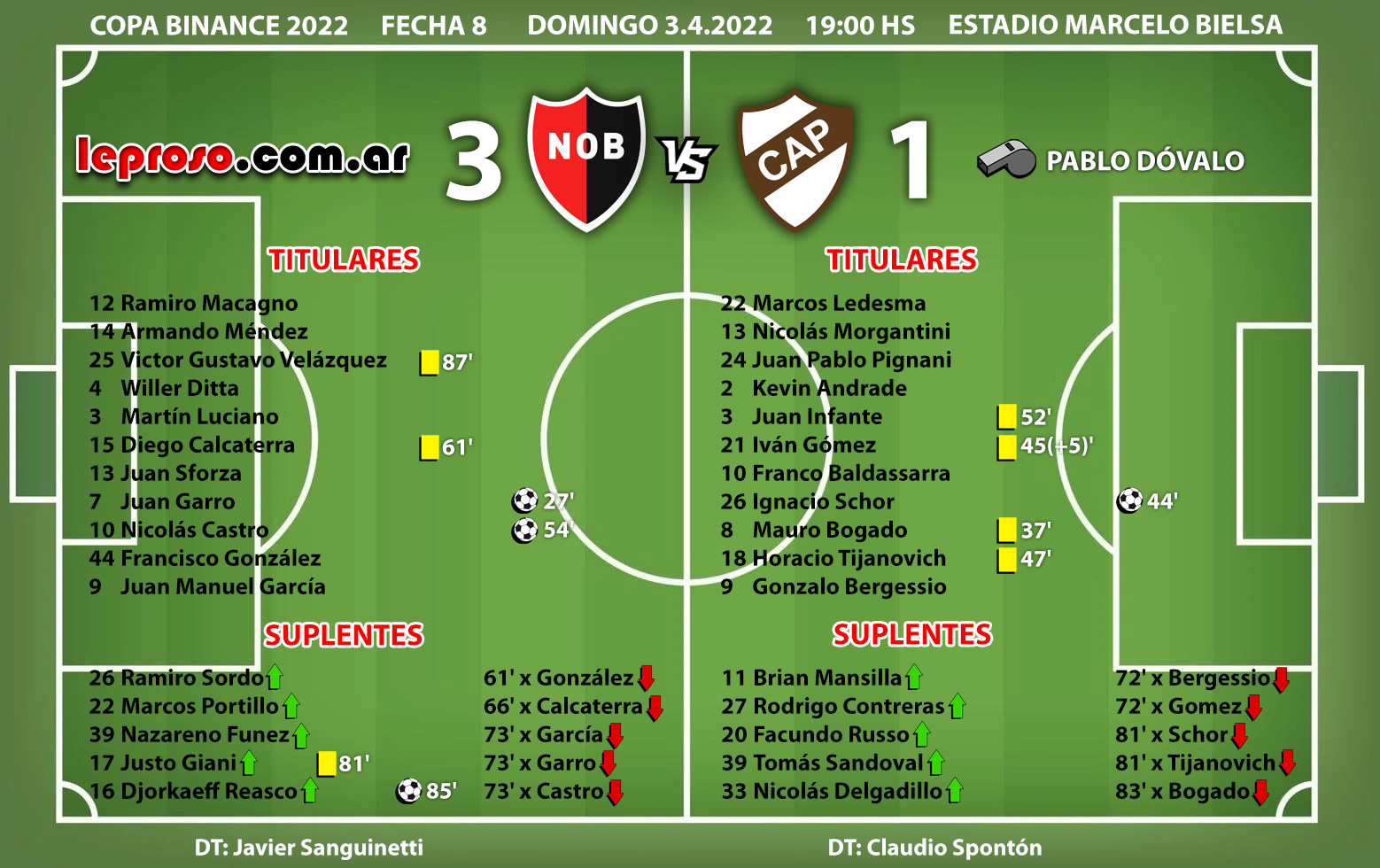 Es el 1º 3-1 de Javier Sanguinetti dirigiendo a Newell's. |