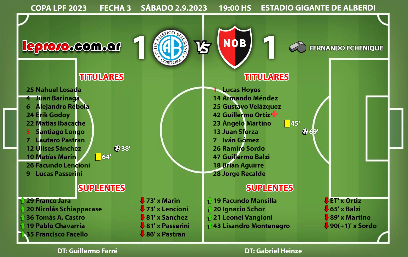 Anterior 1-1: ante Talleres de Cba el 28/07/2023 por la fecha 27 del Torneo Binance 2023 en el Coloso. |