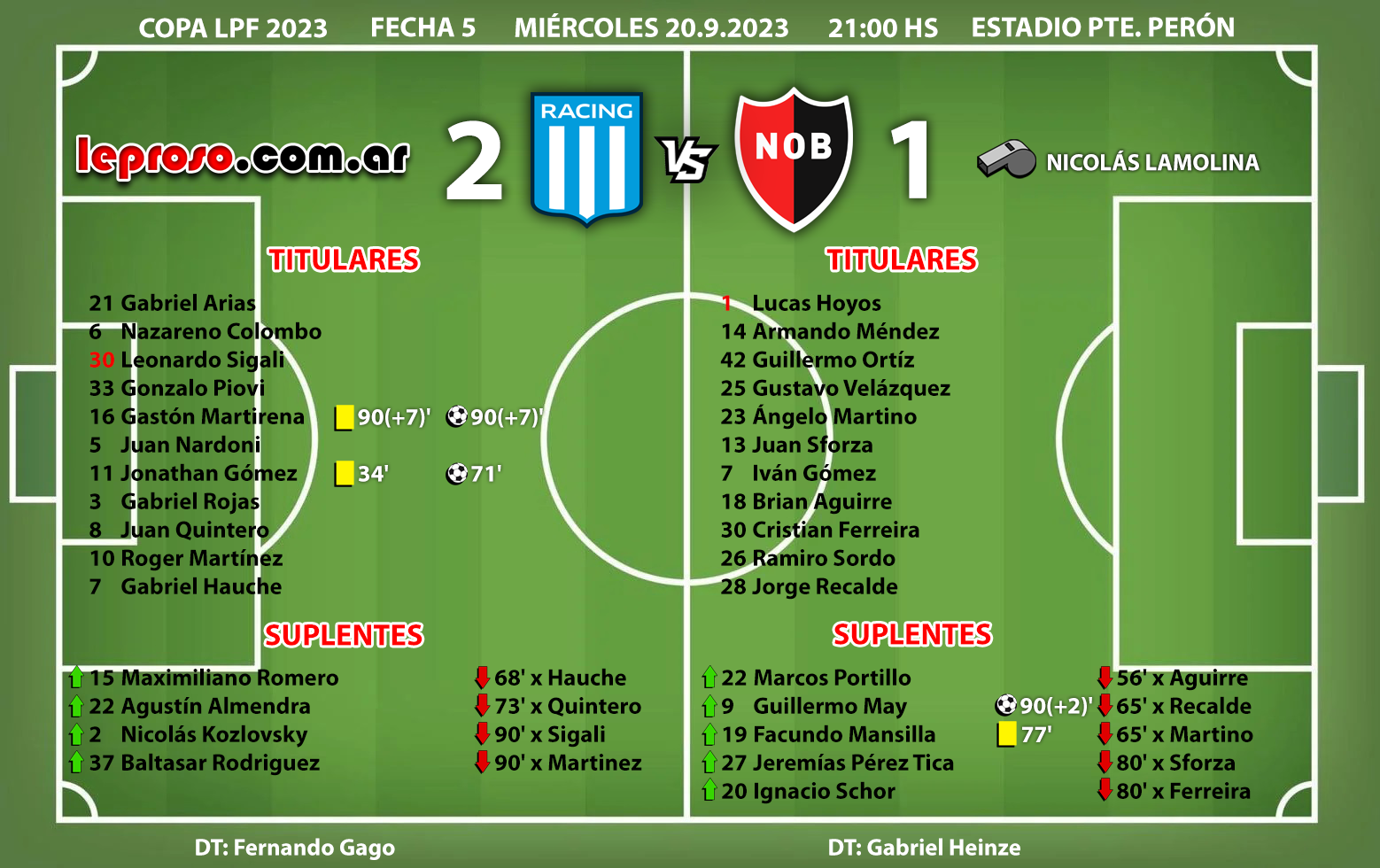 FERNANDO GAGO : enfrentó a NOB 4 veces dirigiendo a Racing, con 2 empates en 0, una derrota y este últmo triunfo de su equipo sobre la hora. |