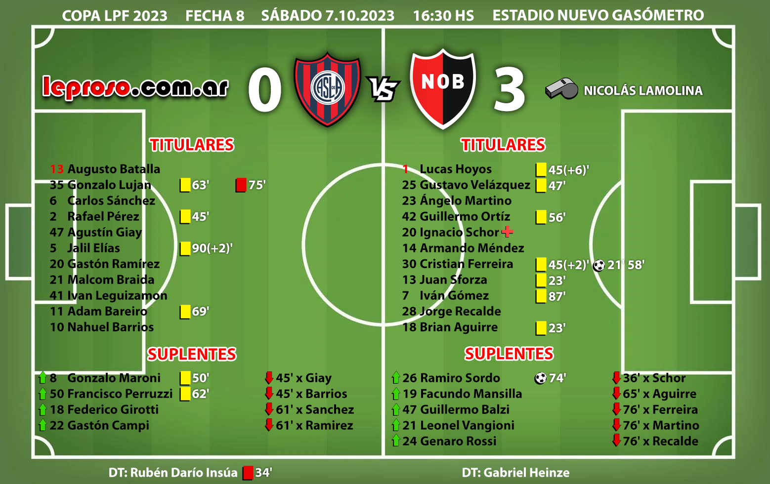 RUBEN DARIO INSÚA: es la 5 º vez que enfrenta a Newell's siendo el DT de San Lorenzo de Almagro. Una sola victoria en el Apertura 2002, el empate en 0 del año pasado y tres derrotas, las dos anteriores en el Coloso, 1-2 en el Clausura 2003, 0-1 en 2023 y este 0-3.. |