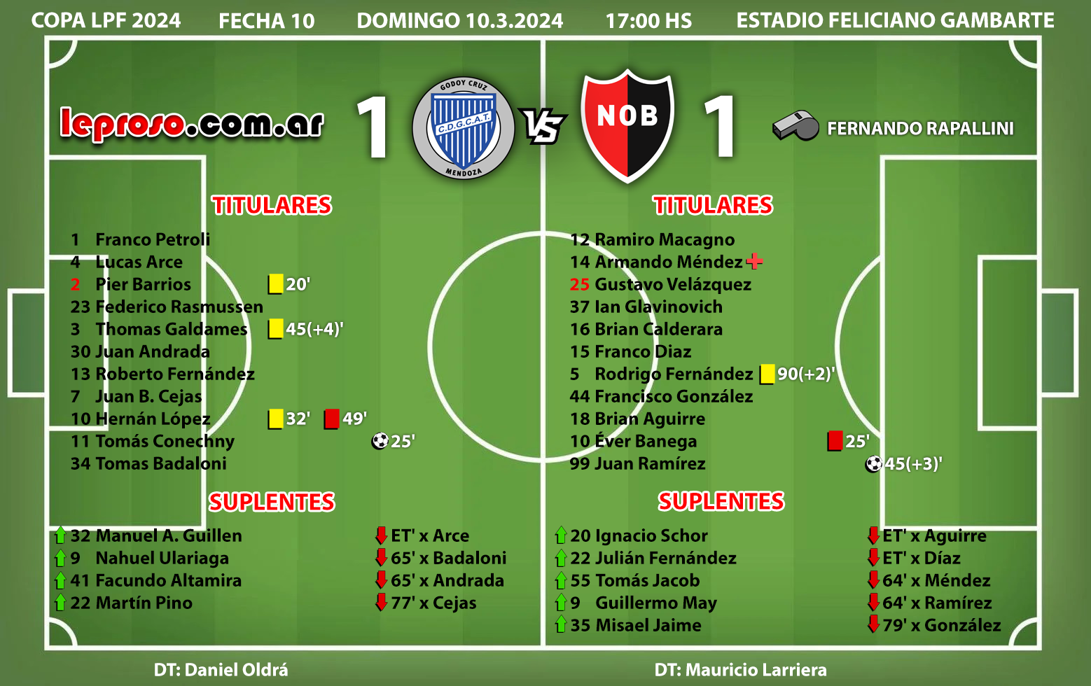 DT DANIEL OLDRA: enfrentó 4 veces a la lepra, siempre como DT del Tomba. Derrota 0-2 en 2015 y 0-2 en 2023. Una Victoria en la Copa anterior 2023 por 2-0 y este empate. |