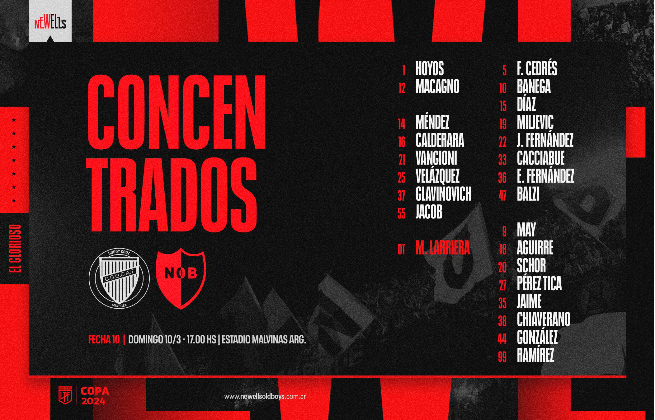 MAURICIO LARRIERA : 10º partido, con 5 triunfos, 3 derrotas y 2 empates desde que asumió como DT rojinegro. 17 de 30, efectividad del 56,66 %. |