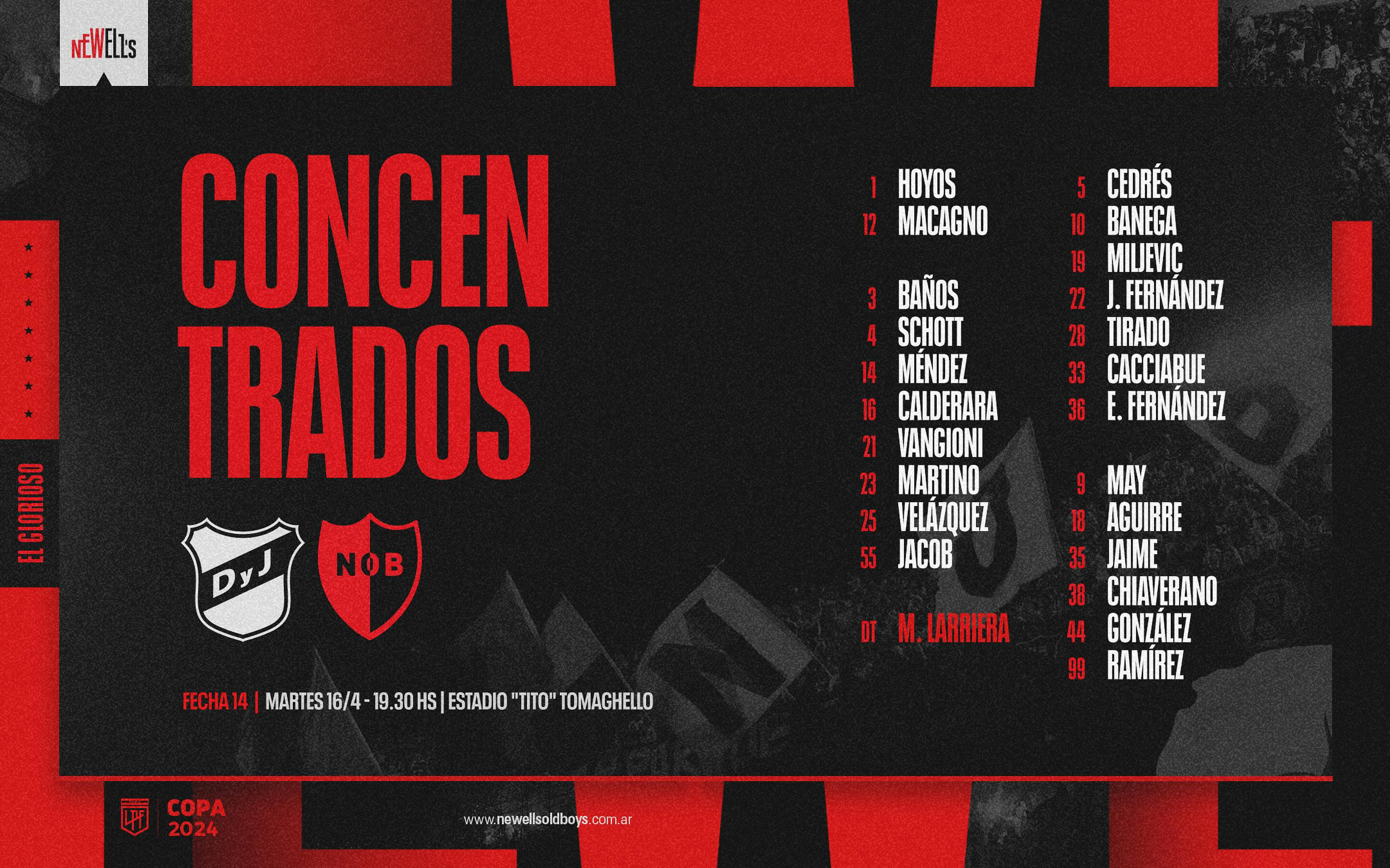 MAURICIO LARRIERA : 14 partidos en la presente Copa, con 6 triunfos, 5 derrotas y 3 empates desde que asumió como DT rojinegro. 21 de 42, efectividad del 50,00 %. En total suma 15 partidos si contamos la victoria ante Midland por Copa Argentina, con 7 triunfos, 5 derrotas y 3 empates. |