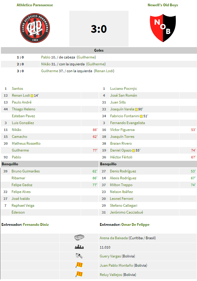 .........0-3 ante ATLETICO PARANAENSE por la primera ronda de la Copa Sudamericana 2018
