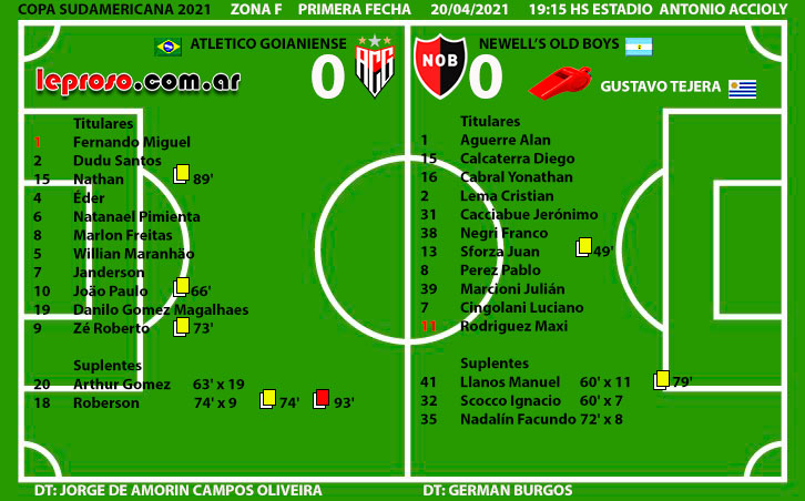 18 ROBERSON primer jugador que recibe una tarjeta en un partido de Newell's por Copa Sudamericana.