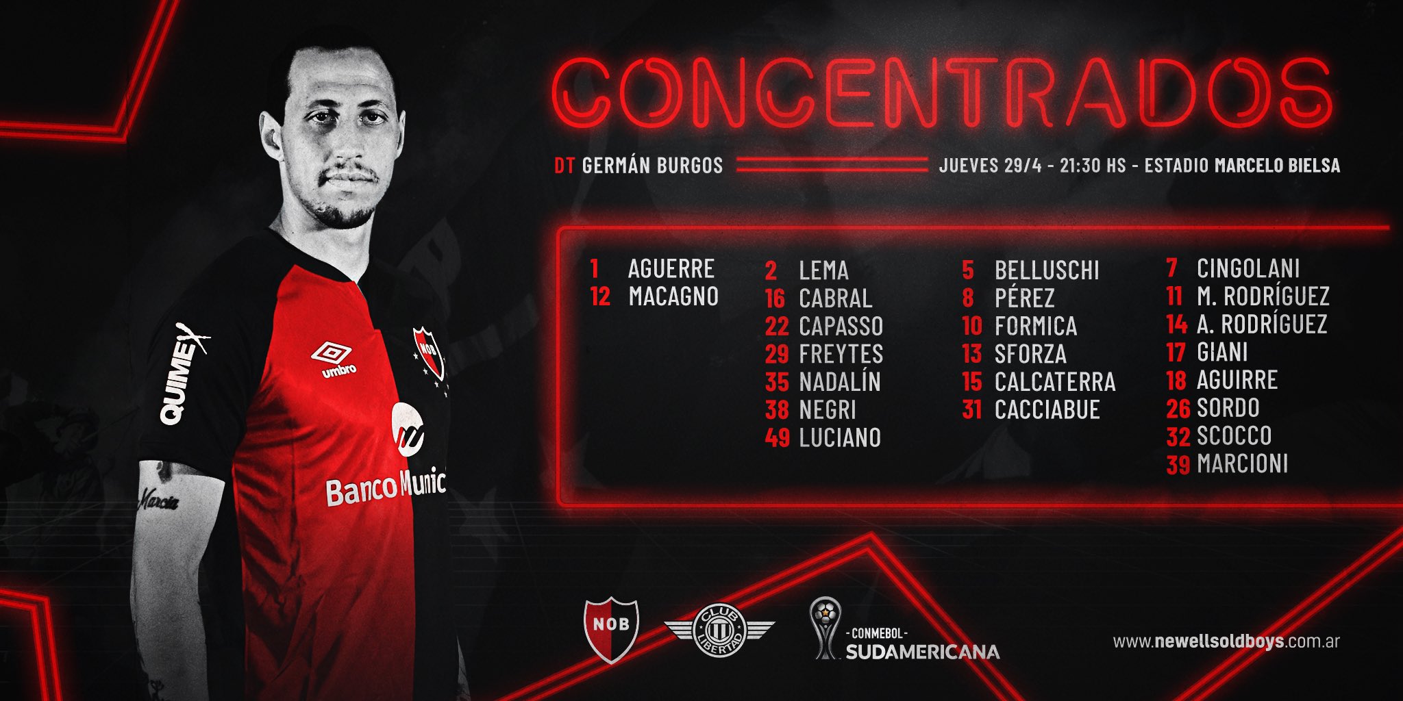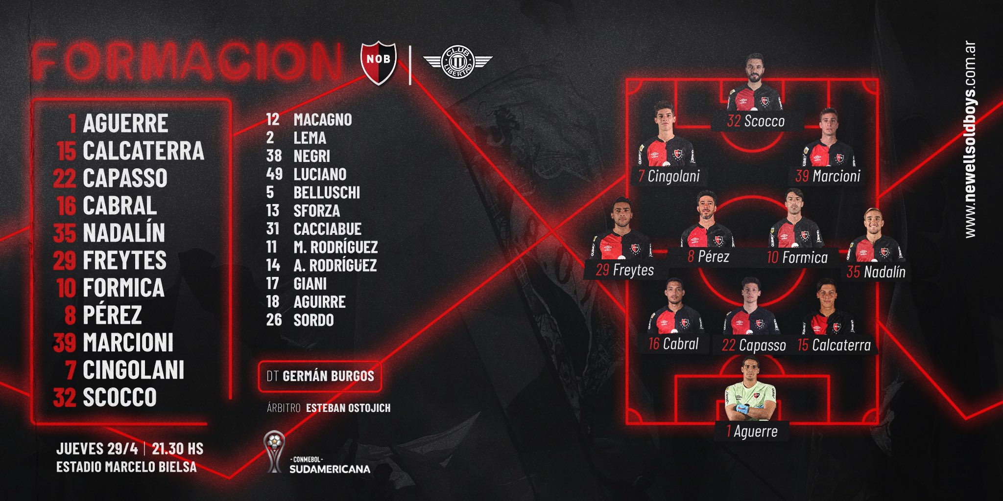 DT DANIEL GARNERO : es la 4º vez que enfrenta a Newell's como DT rival y nunca perdió, registra 3 empates y una victoria, fue en 2008 con Arsenal 1-1 frente al equipo de Gamboa, en 2010 con Independiente 1-1 versus Roberto Sensini, en 2011 con San Martín de San Juan 0-0 ante el Newell's de Diego Cagna y finalmente la victoria 3-1 de Libertad.