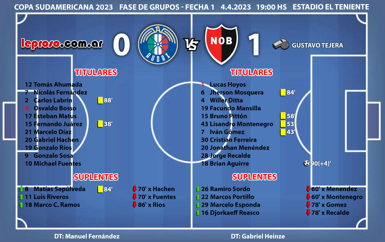 BRIAN AGUIRRE : Debutó en la red leprosa a los 90' + 4' en su partido Nº 24, el 3 º por Sudamericana y su 1º cotejo internacional desde el arranque. Es el 3º jugador de la historia rojinegra en convertir un gol por Copa Sudamericana de visitante. El 2º fuera del país. Fueron Borghello en 2010 a Estudiantes en cancha de Quilmes, Alexis Rodriguez en 2021 en Rancagua antes Palestino y ahora Brian Aguirre en Rancagua Chile ante Audax Italiano. |
