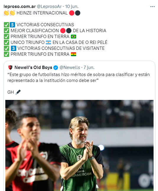 GABRIEL HEINZE : dirigió su 25º partido oficial en Newell's sumando la derrota ante Claypole por Copa Argentina, los 5 triunfos por Copa Sudamericana y las primeras 19 fechas del Torneo Binance 2023, en total 12 victorias, 7 derrotas y 6 empates.