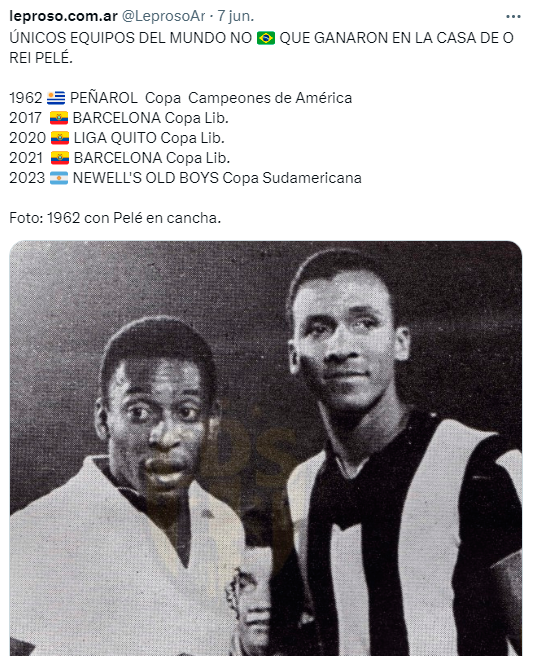Somos el único equipo argentino que le ganó al Santos en el Estadio Vila Belmiro. ya que Boca lo hizo en el Morumbí en la final de la Copa Libertadores 2003 e Independiente había hecho lo propio en el Maracaná en la Semifinal de 1964. |