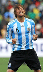 En 2010 fue convocado por Diego Maradona siendo jugador del OLIMPIQUE DE MARSELLA. Su 2º Mundial , fue titular indiscutido en los 5 encuentros disputados por el seleccionado nacional. Convirtió el primer gol Argentino en el debut frenta a Nigeria (1-0), disputó los 2 partidos restantes (4-1 frente a Corea del Sur y 2-0 frente a Grecia. Le siguieron el 3-1 frente a México por Octavos y el 0-4 frente a Alemania en lo que fue la despedida del seleccionado argentino del Mundial 2010.