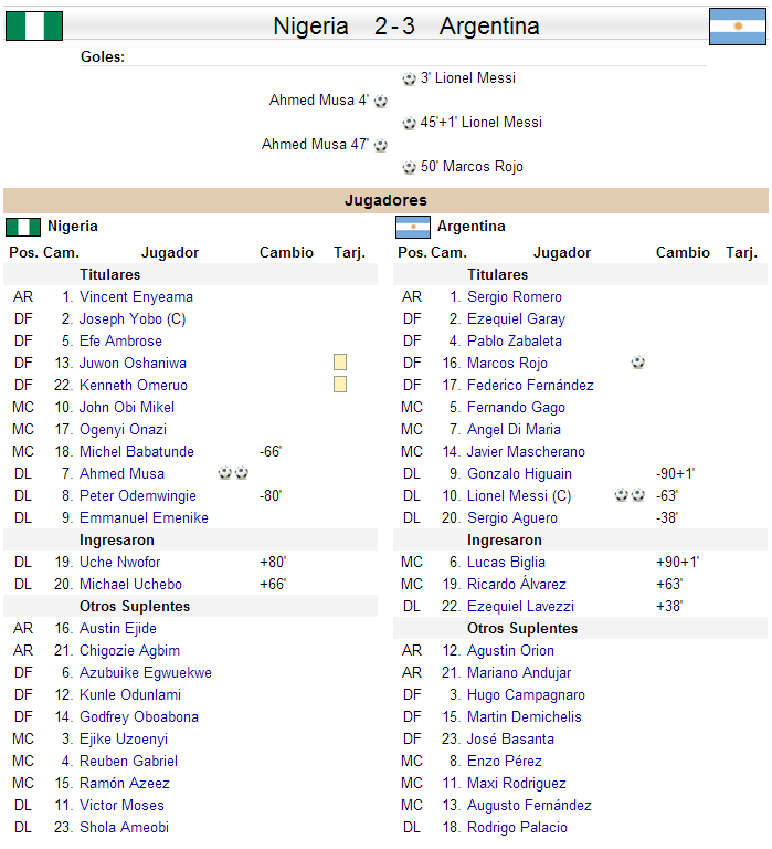 GOL DE MARCOS ROJO - NIGERIA 2 - ARGENTINA 3