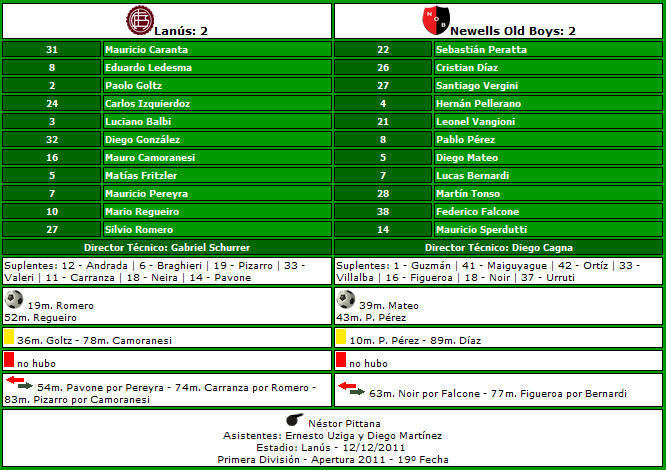 APERTURA 2011 - FECHA 19 - LANUS 2 - 2 NEWELL`S