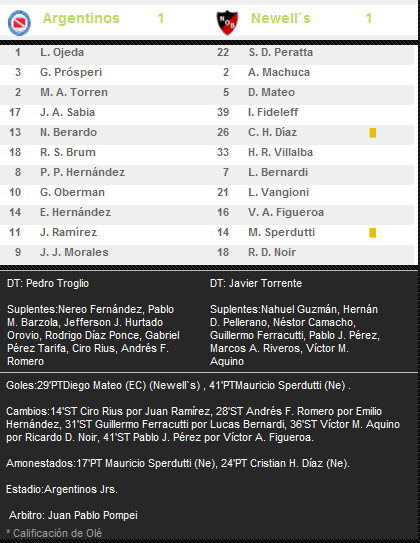 La lepra suma 5 partidos sin conocer la derrota. Desde la caída ante Boca (próximo rival) en la fecha 16 del Torneo pasado, la lepra empató en 4 oportunidades y ganó 1 (a Colón en la últma fecha). Pero fuera de casa NOB no gana desde la fecha 12 del Clausura 2011 (2-1 frente a Gimnasia en La Plata - Foto), en total 4 partidos sin conocer la victoria de visitante.