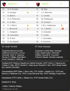 Otro debut doble en el Coloso del Parque. Desde el arranque y por una lesiòn de Machuca, hizo su primer presentaciòn Santiago Bergini. Y a los 28' ST en reemplazo de Tito Noir, debutó en el futbol local, el delantero colombiano Carmelo Valencia.