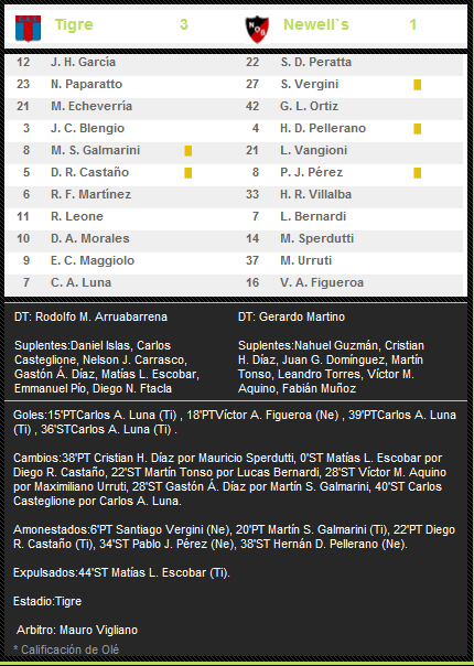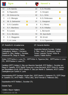 NOCHE DE LUNA LLENA: en un partido lleno de injusticias, hubo un justiciero que le propinó a la lepra 3 goles en un mismo partido. Carlos Luna, suma 4 goles convertidos a NOB, el primero fue en el Clausura 2009, el 10 de Abril cuando empatamos 1-1 en Victoria. En ese encuentro, Luna abre el marcador para los dirigidos por Cagna y luego Leandro Armani le da el empate a los de Sensini. Para encontrar un jugador rival que le haya convertido a la lepra 3 goles en un mismo partido nos tenemos que remontar 10 años atrás, y alli encontraremos a otro LU, Josemir LUJAMBIO un ex lepra que tuvo su noche, la del 10/02/2002 y en el mismísimo Coloso del parque convirtió los 3 goles con los que el taladro se impuso a los dirigidos por Juan Manuel Llop por 3-0, en lo que fue la despedida del chocho como DT rojinegro. En el siguiente encuentro asumía como técnico el Negro Zamora.
