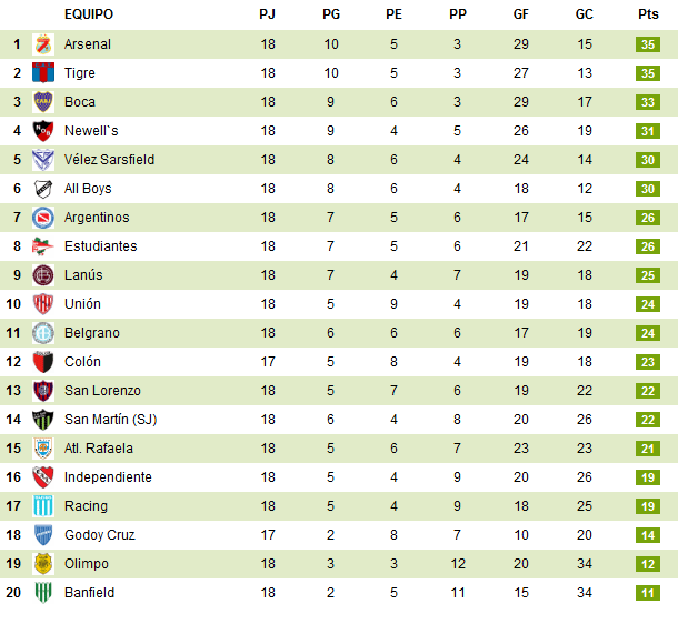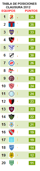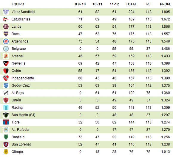 TEMPORADA 2012 / 2013 - ASI ARRANCA EL PROMEDIO EN EL APERTURA 2012