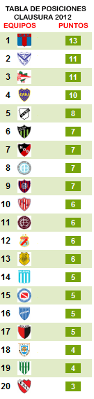 TABLA DE GOLEADORES ROJINEGROS CLAUSURA 2012