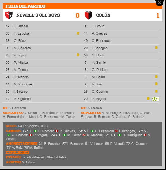 0-1: La lepra perdió con el Sabalero 0-1 en 9 oportunidades, 6 en Rosario y 3 en Santa Fé. El último 0-1 había sido en el choque anterior antes de descender Colón, en la fecha 14 del Torneo Final 2014, en ese entonces Lucas Bernardi también estaba en el Coloso, pero con los pantalones cortos.