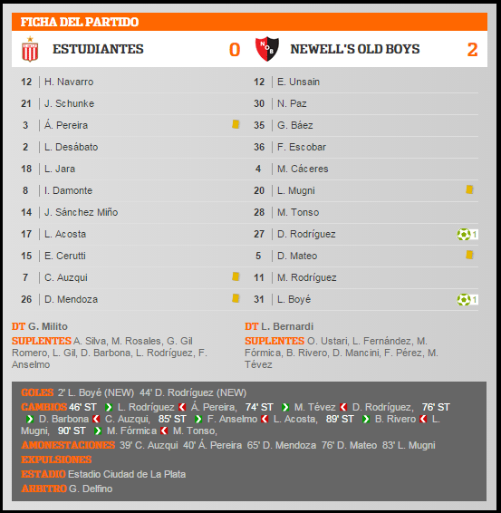 No corta ni pincha: el León de La Plata hace 8 partidos que no puede ganarle a la lepra. La última derrota de Newell's fue en la fecha 1 del Clausura 2011 por 1-2 y de la mano de un ex lepra, Eduardo Berisso, al mando del equipo pincharrata. Los goles locales fueron de Gastón Fernandez y Gabriel Mercado, en tanto descontó para la lepra Juan Cobelli sobre el final del partido.