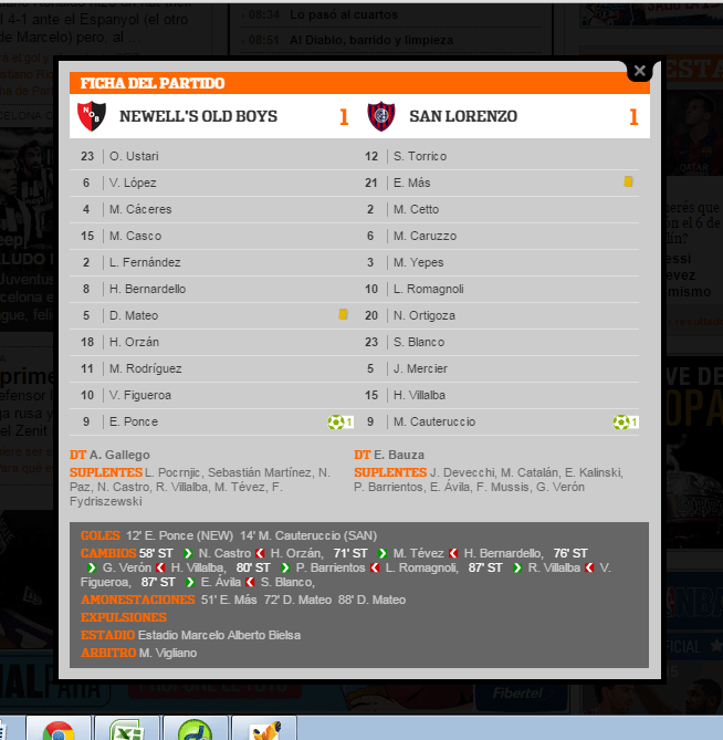 PONCE GOL: El nueve de area del equipo del Tolo, volvió a gritar gol y convierte por primera vez en el torneo. Suma 5 en su carrera leprosa y es el primer gol que le convierte a San Lorenzo y el primero que ejecuta de larga distancia. Los otros fueron 3 de jugada y 1 de cabeza. En tanto Martín Cauteruccio, el 9 del otro area le volvió a convertir a la lepra por 2º vez consecutiva ya que en la victoria 3-1 de la lepra frente al cuervo en la fecha 15 del Torneo Transición 2014 había marcado el único tanto santo. Pero Cauterucción suma 3 frente a Newell's ya que su primer gol se lo convirtió con la casaca de Quilmes en el Torneo Clausura 2011, derrota leprosa (1-3) en Buenos Aires.