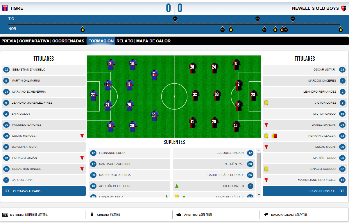 NO PIERDE CON : la lepra suma 3 partidos sin perder con Tigre. Fueron dos triunfos consecutivos por 2-1 (2014) y este empate sin goles en el Coloso. La última derrota fue en la fecha 16 del Torneo Inicial 2013 (1-2).
