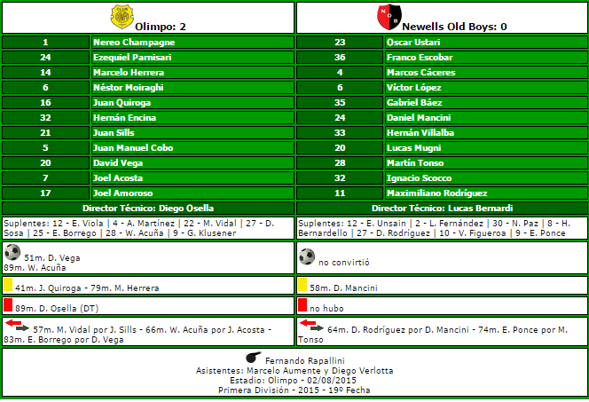 NUMEROS REDONDOS: Desde el arranque, la Fiera Rodriguez jugó ante Olimpo su partido Nº 160 con la rojinegra, igualando la linea histórica de Eduardo Berizzo y Fernando Gamboa. En tanto Hernán Villalba alcanzó los 130 partidos en NOB y Martín Tonso los 120.