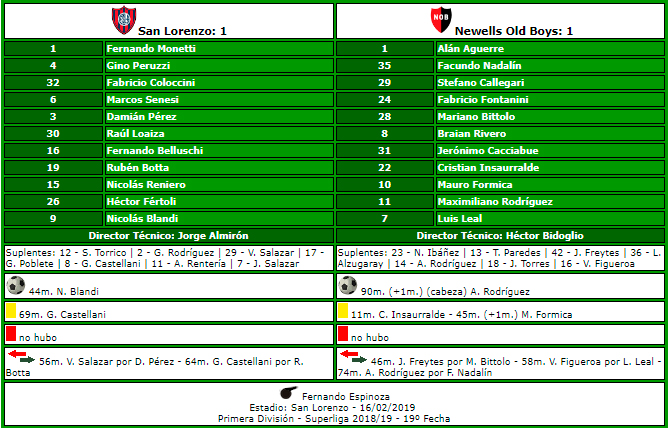 ARBITRO FERNANDO ESPINOZA: ya estuvo en un partido del historial, fue en la fecha 8 de la temporada 2016/2017, fue empate (2-2). Formica y la Fiera los goles leprosos. Otro empate se suma al historial.