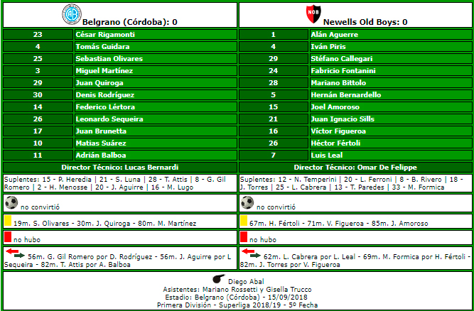 15/09/2018 Belgrano 1-1 Newell's, empate (Superliga 2018)
