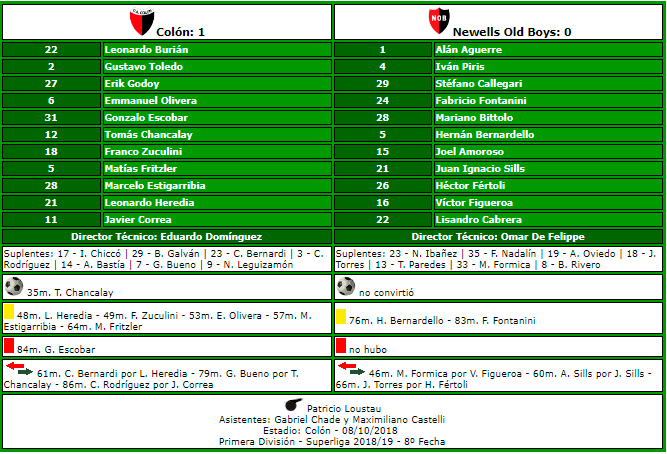 EL RESULTADO: COLON 1-0NEWELL'S OLD BOYS