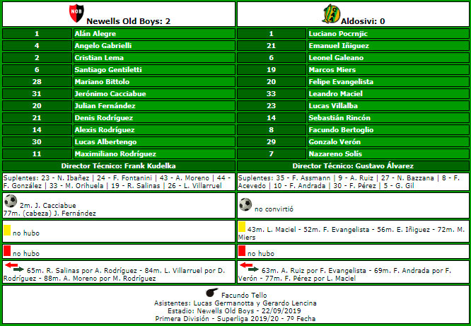 65 minutos en la fecha 7 (NOB 2-0 ALDOSIVI)
