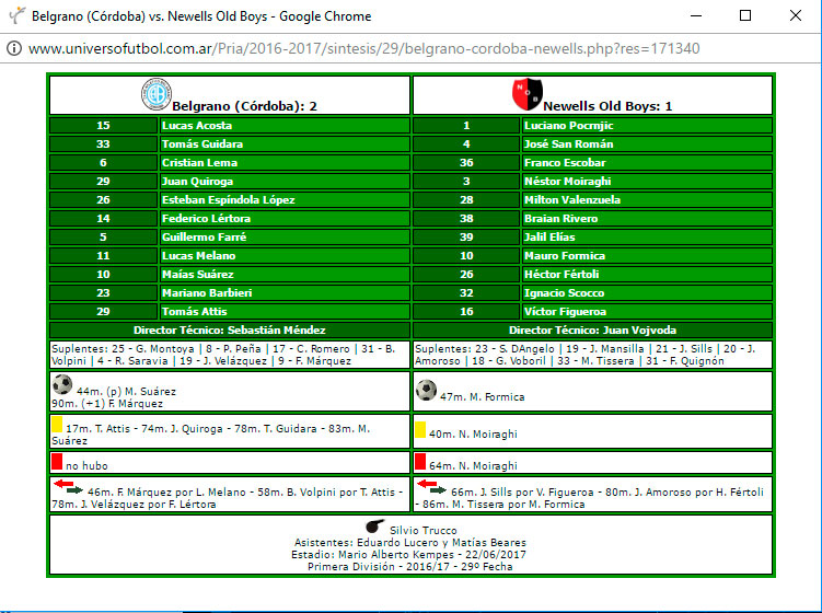 1-2: solamente 2 veces en la historia entre leprosos y piratas, el rojinegro perdió con este marcador, fue en la fecha 10 del Clausura 1999 también en Córdoba, Testa y Avalos para el local, descontó Fagiani para la lepra. Se extiende a 5 partidos la racha negativa de la lepra sin poder ganarle al Pirata. Última victoria el equipo campeón del Tata Martino por la fecha 4 del Torneo Final 2013, fue 2-0 en el Coloso con goles de Scocco y Urriti, desde entonces 3 empates y 2 derrotas consecutivas de visitante. En córdoba la racha es de 4 partidos, última victoria frente al Pirata, 3-2 en la fecha 4 del Apertura 2011 con goles de Victor Aquino y dos de RIcardo Noir, Gastón Turus y Juan Maldonado para el pirato, el DT leproso Javier Torrente.