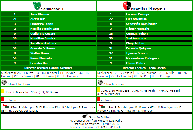1-1: en 3 oportunidades la lepra empató con Sarmiento con este marcador. Las dos anteriores fueron en condición de Local y en el mismo año 1980, por el Nacional y por el Torneo de 1º división. EL otro empate que completa el historial fue 0-0 en el mismo Nacional de 1982 en Junín. En esta corta historia la lepra perdió solo una vez, fue en 1981 por 3-2 en Junín y desde entonces empataron 4 veces y Newell's ganó en 2 oportunidades. La última victoria fue en la fecha 5 del Torneo 1º División 2015.