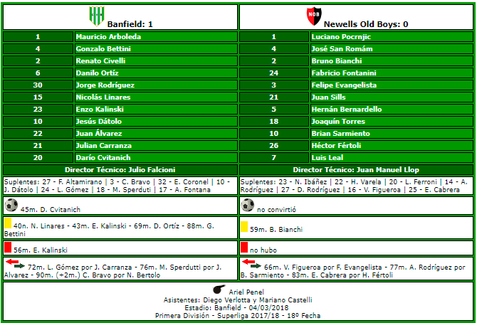 EL RESULTADO: BANFIELD 1-0 NEWELL´S OLD BOYS