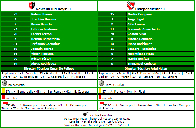28/04/2018 Newell's 0-1 Independiente, triunfo de HOLAN