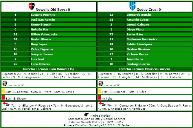 Segundo partido que la lepra no puede con Godoy Cruz en el Coloso. Además, contando el partido de Copa Argentina, Newell's suma 3 partidos consecutivos sin poder ganarle al tomba.