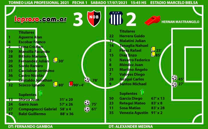 . Es el primer 3-2 de Fernando Gamboa dirigiendo a Newell's. ..