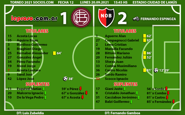 Es el 2º 2-1 de Fernando Gamboa dirigiendo a Newell's. En el ciclo anterior (2008) también le ganó a Lanus con ese marcador. |