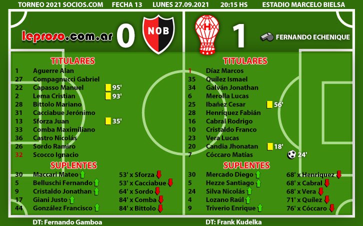 Es el 3º 0-1 de Fernando Gamboa dirigiendo a Newell's. En el ciclo anterior (2008) frente a Gimnasia de Jujuy y en el presente Torneo ante el bicho y ahora ante el globo. |
