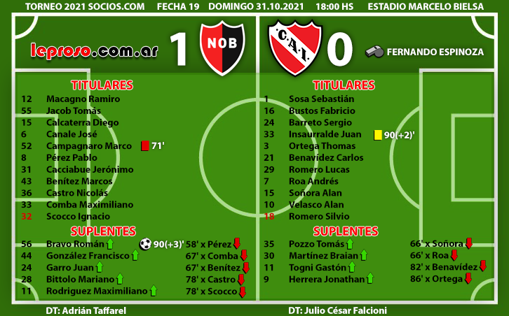 ADRIAN TAFFAREL: fueron 4 los primeros debutantes de la era Taffarel y todos en el mismo partido (Benitez, Campagnaro, Jacob y Bravo). Último antecedente , era Kudelka (Gentiletti, Gabrielli, Fernandez, Albertengo). La curiosidad es que en ambos multiples debut, uno de los ingresantes convirtió al menos un gol (Bravo con Taffarel y Albertengo con Kudelka). Primera victoria para Taffarel como DT rojinegro que sacó de esta manera 4 puntos de 9, un 44.44 % todavía por debajo de la media.