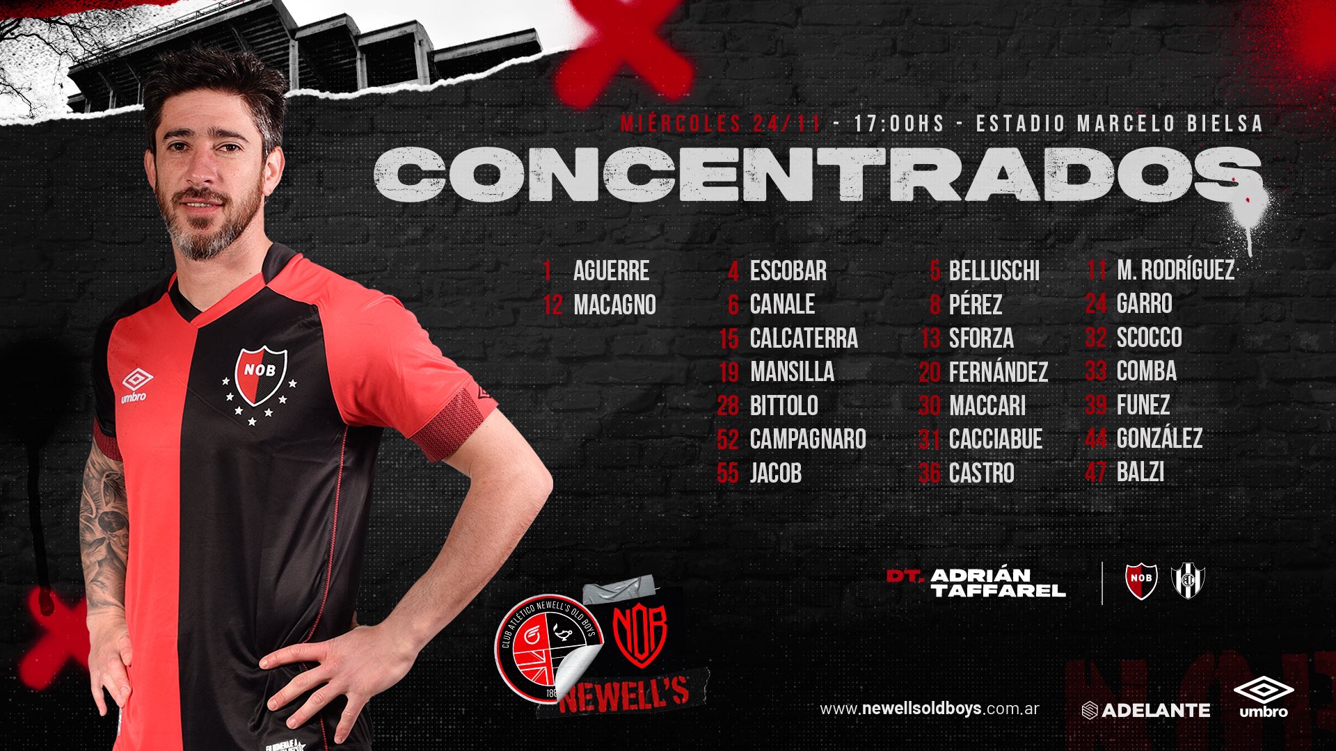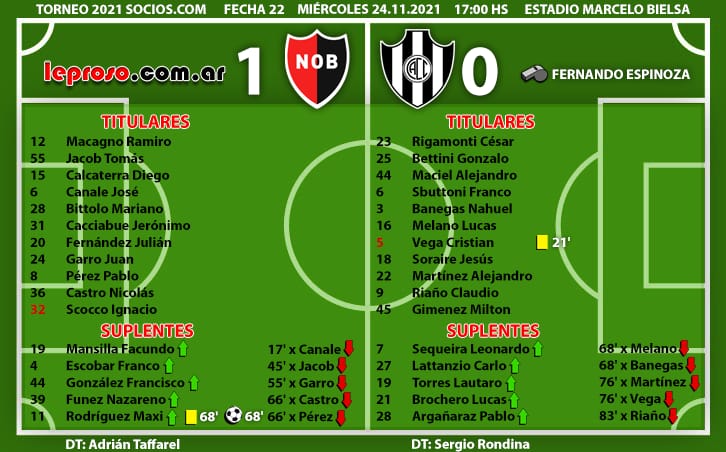 ADRIAN TAFFAREL: los resultados de local lo siguen acompañando a pesar del notorio desconcierto de los jugadores en el campo de juego, sobre todo en el area defensiva. Logra 3 victorias consecutivas de local, 4 partidos invictos en el Coloso y 360' con el arco en 0 en el Marcelo Bielsa. Alcanza una efectividad del 55,56 % superior a la media, con 3 victorias, 1 empate y 2 derrotas (10 puntos de 18).